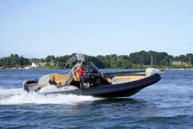 La gamme Thor 8.0 du chantier italien Prua Al Vento s’étoffe avec l’arrivée de son navire amiral. Un semi-rigide de 8 mètres au plan de pont classique, avec de solides performances à la clef ! Long. :8,10 m –Long. int. :6,80 m –Larg. :3,08 mLarg. int. :1,70 m –Poids :1 290 kg –Carbu :350 l –Eau :60 l –Mot. maxi :300 chHomol. :cat. C/16 pers.